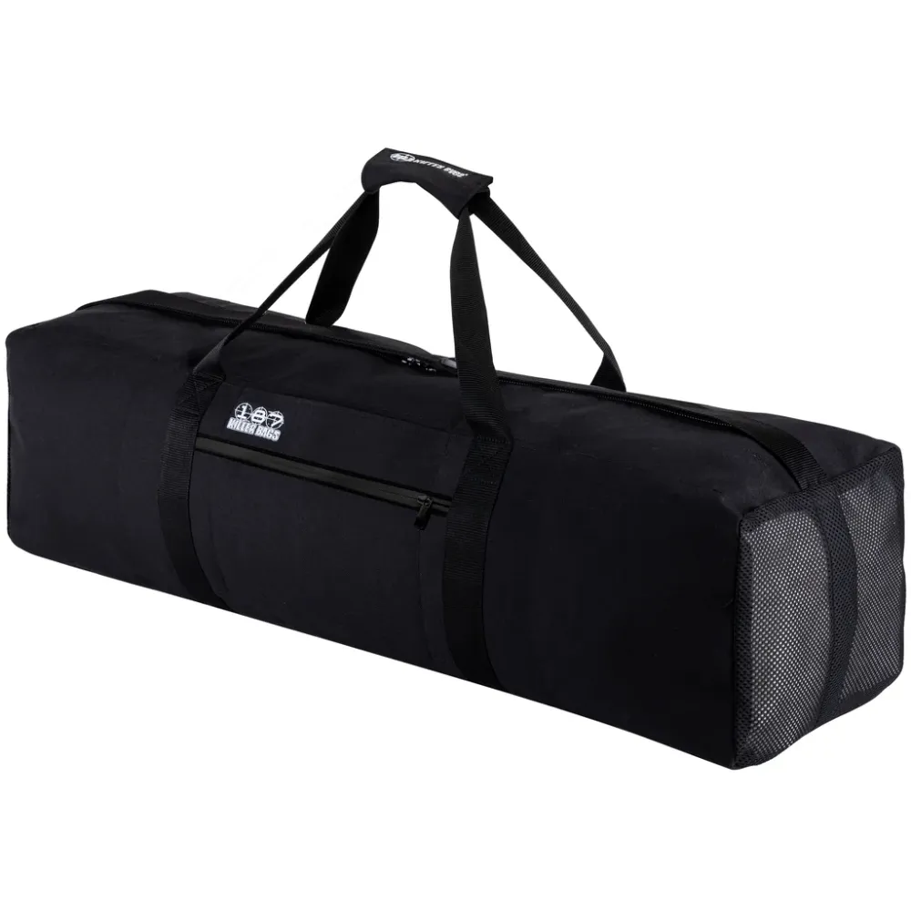 Haul your full arsenal of skateboards and gear with this oversized duffel bag. Purpose-built to withstand the all the abuse of daily sessions and long-distance travel. Two mesh ventilation panels allow your stuff to air out. Includes rugged shoulder strap and carry handles. Strap your skateboard to the bottom to wheel it around when it’s really loaded up.
