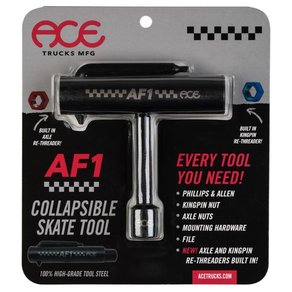 Redefining the use of a skate tool. Even smaller in size than our Classic tool. Recessed into the wheel and truck wrenches are hardened steel re-threaders to easily tune your trucks up anywhere. Knurling on the handle mounting hardware piece ensures ease of use and in a pinch can be used to file your griptape around the edge of your board. Check-ball engagement mechanism on the Phillips/Allen key and mounting hardware tool prevents loss.