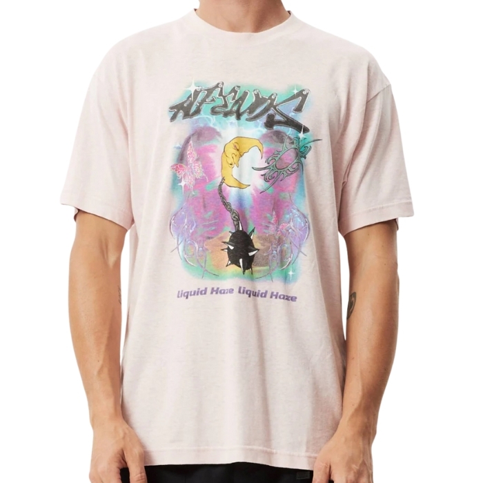 Lucid dreaming in the liquid haze graphic tee. Sink into a unique piece in a relaxed fit cut, featuring a bold graphic logo that blurs the lines between dreams and reality. Slip on a buttery soft-feel design, with a floaty lightweight-feel, crafted from a 100% eco-friendly blend of hemp and organic cotton.