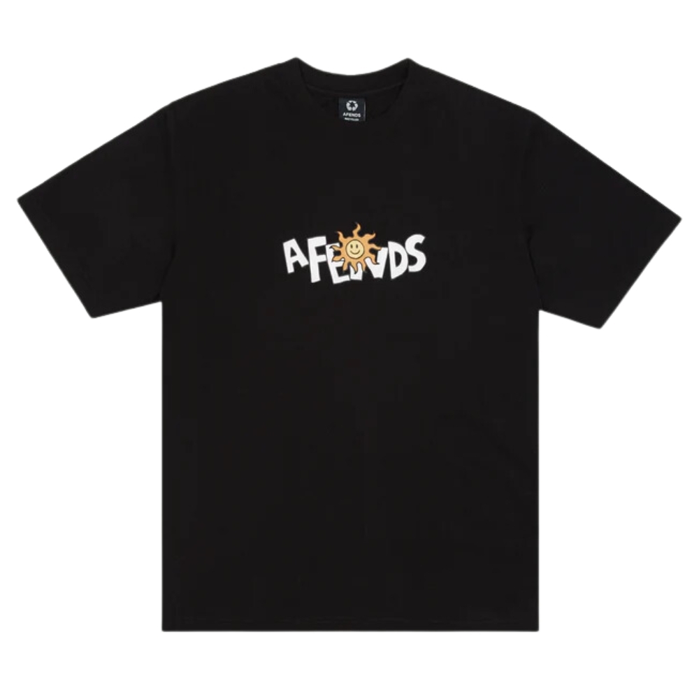 No gloomy days in the sunshine tee. Made from eco-friendly materials, this shirt is crafted from our soft and breathable blend of recycled cotton and organic cotton jersey. Wear all year round, in our classic retro cut design with short capped sleeves and graphic afends logo.
