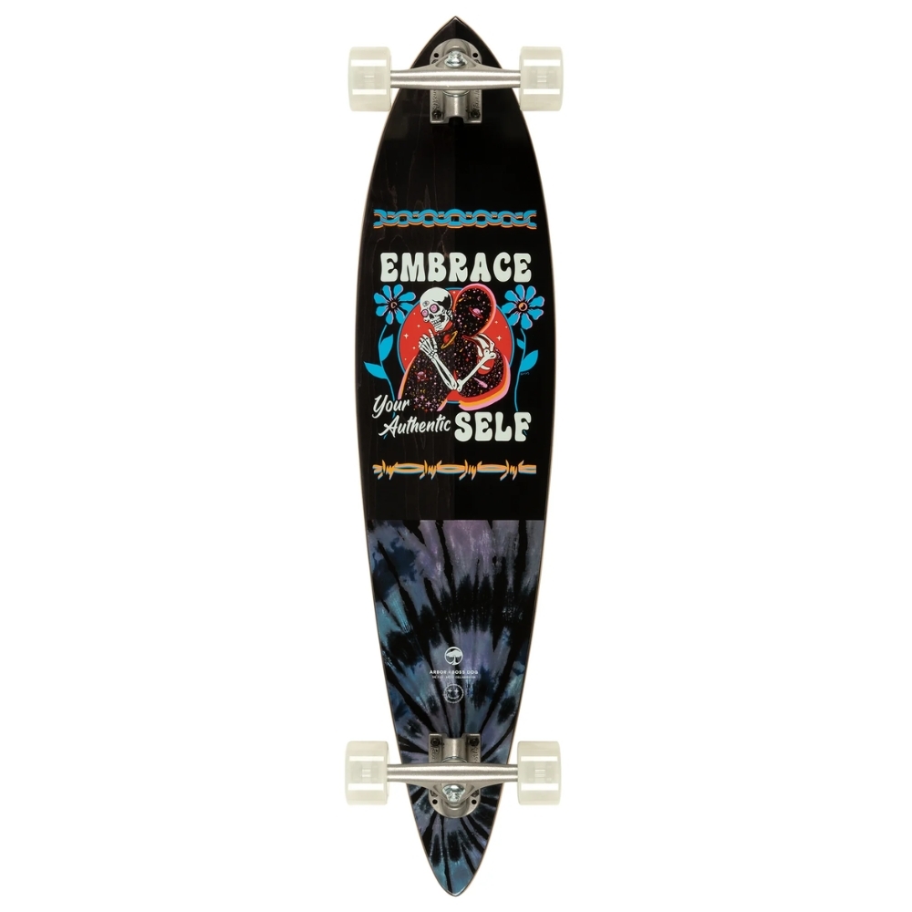 A compact pintail with an extended wheelbase and mellow flex for around town cruising and lower speed carving.