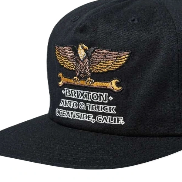 The Repair Snapback features a custom vintage fit and bold embroidered eagle and wrench design. Designed with a high-profile, flat bill, and adjustable snapback closure.