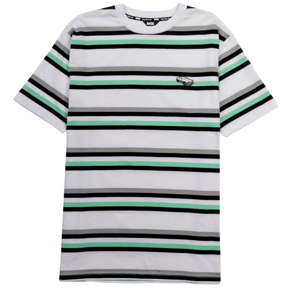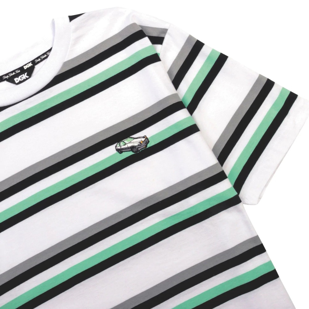 A DGK knit striped shirt with an embroidered Toyota AE86 Hachi-Roku graphic on the chest!