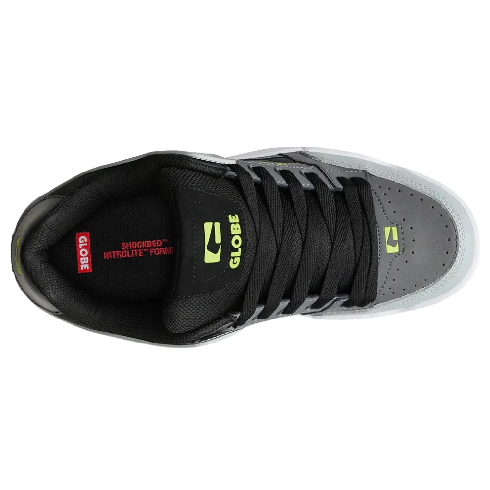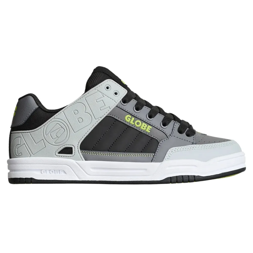 The Tilt in Greyscale/Black Globe’s classic heritage skate silhouette featuring a moulded TPR outside collar for support and durability, and S-Trac™ sole pattern for enhanced grip and board feel.