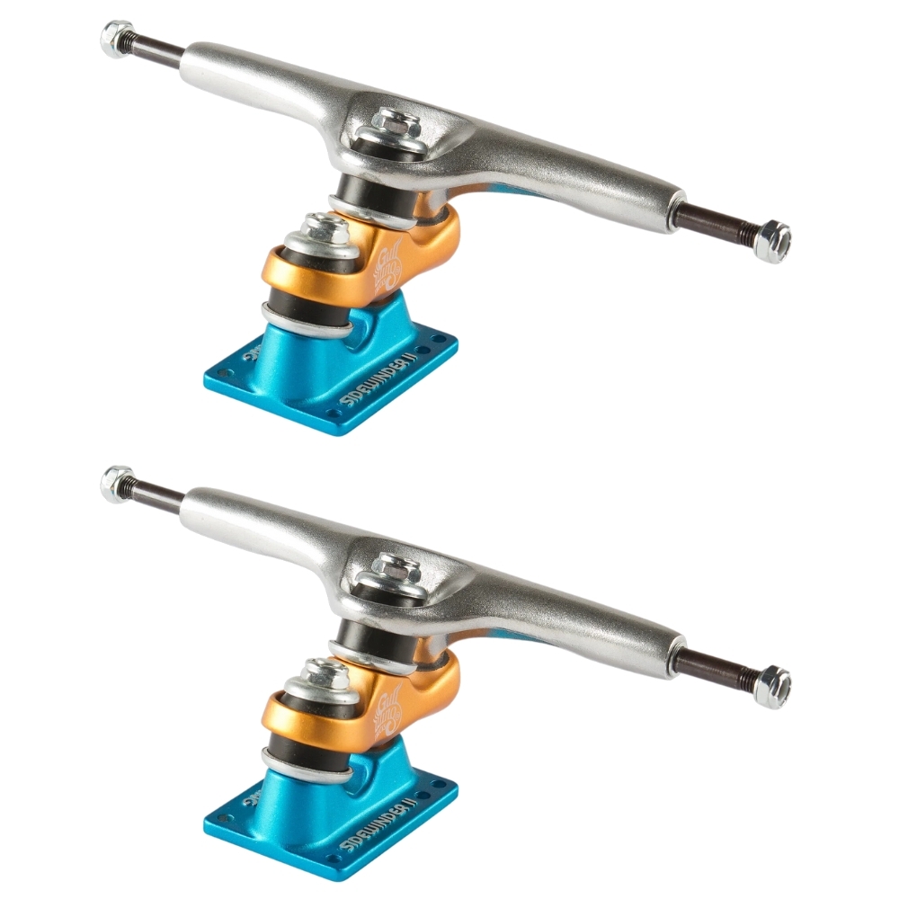Our Sidewinder II trucks feature a patented double kingpin style and best suited for carving. The knurled kingpins stay securely in place while riding and will allow you to carve harder, deeper and smoother than you’ve ever imagined! The 356 Aluminum and Chromoly axle have become the ‘gold-standard’ of the truck industry and have proven themselves through years of use and abuse. This heat-treated aluminum cannot be die-cast, and is responsible for the strength and familiar grind characteristics you should expect from a quality truck. The embossed baseplate is also pocketed, for weight savings.