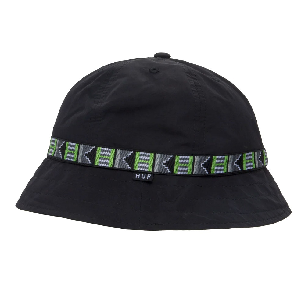 Inspired by vintage outdoor camping gear, the Teton Bell Hat is made of lightweight Taslan nylon in a classic 360-degree brim silhouette. Featuring custom jacquard taping around the crown, the hat is finished with a woven HUF flag label at the visor seam.