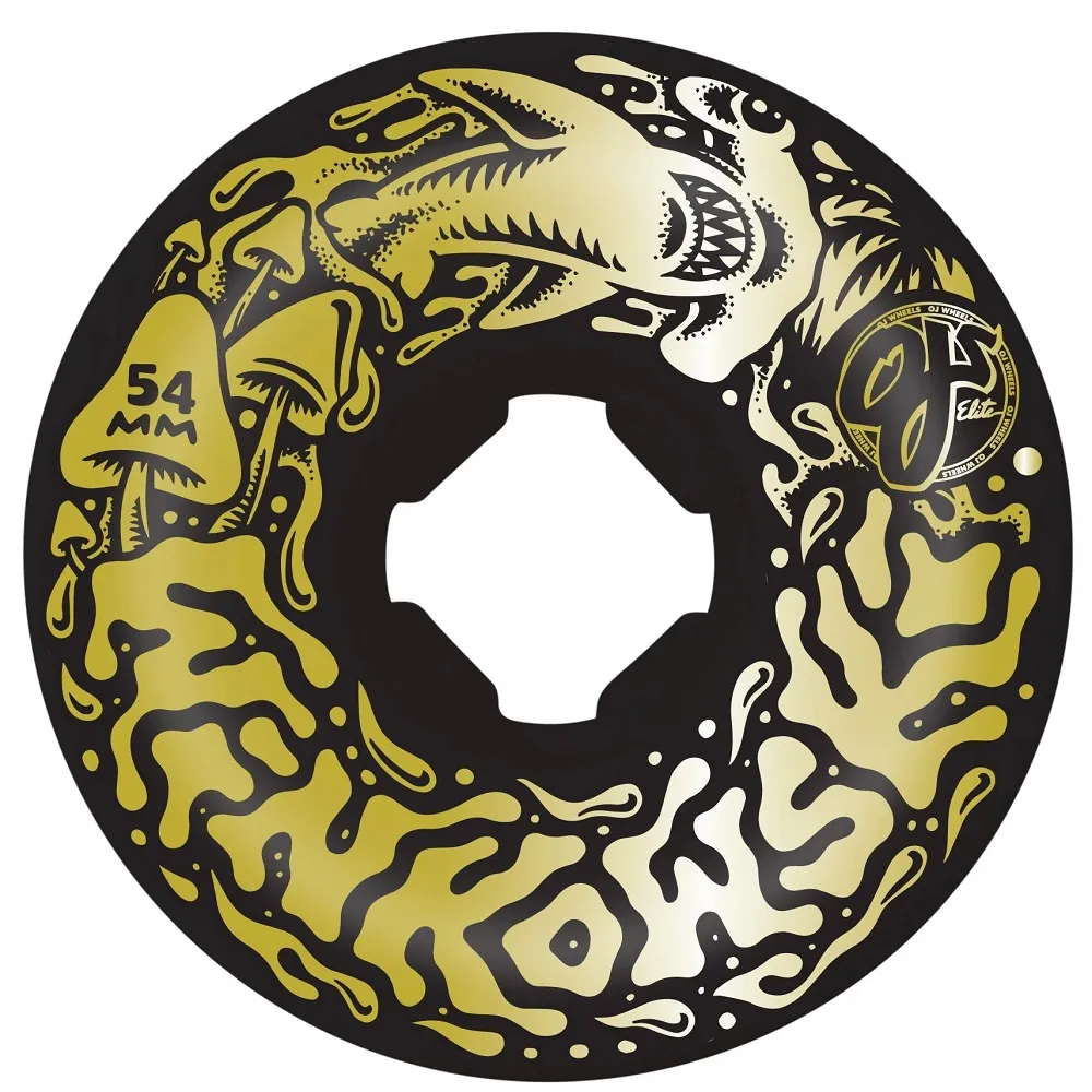 OJ Wheels Erick Winkowski 54mm, 95a Gold Dope Planet Hardline wheels black with metallic gold graphics.