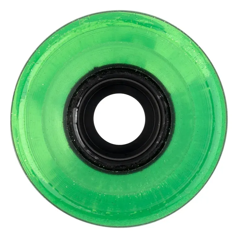 OJ Wheels 60mm Super Juice Green Worms with green transparent glitter 78a urethane and black core and graphic art by @toddbratrud. Green sparkle fishing lure worm included.