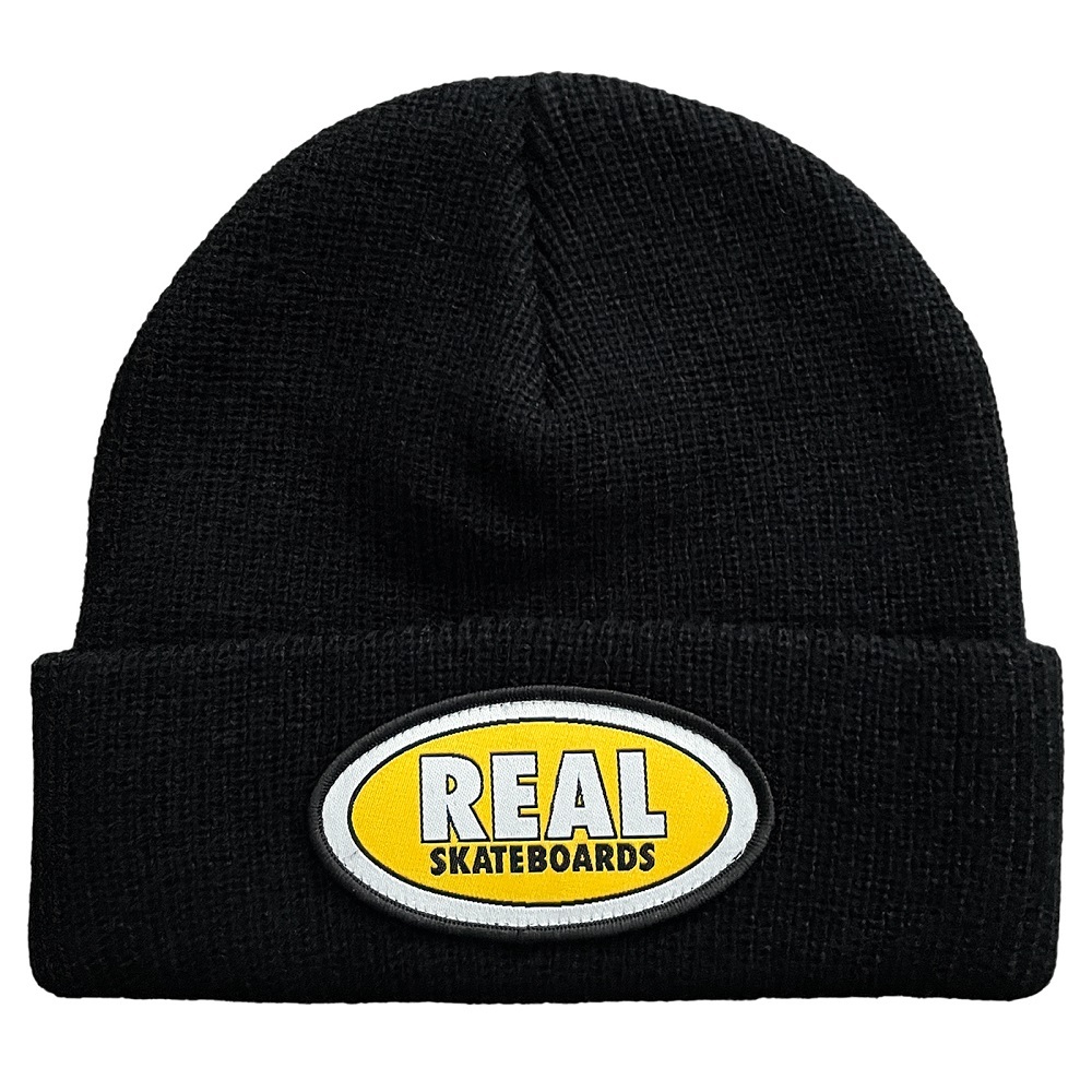Real Skateboards Oval Cuff Black Yellow Beanie