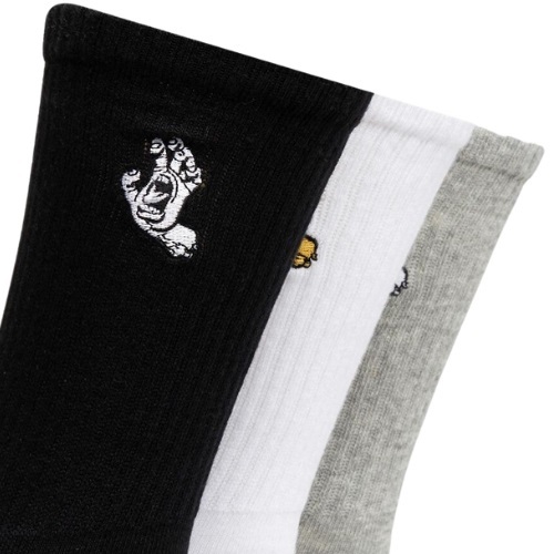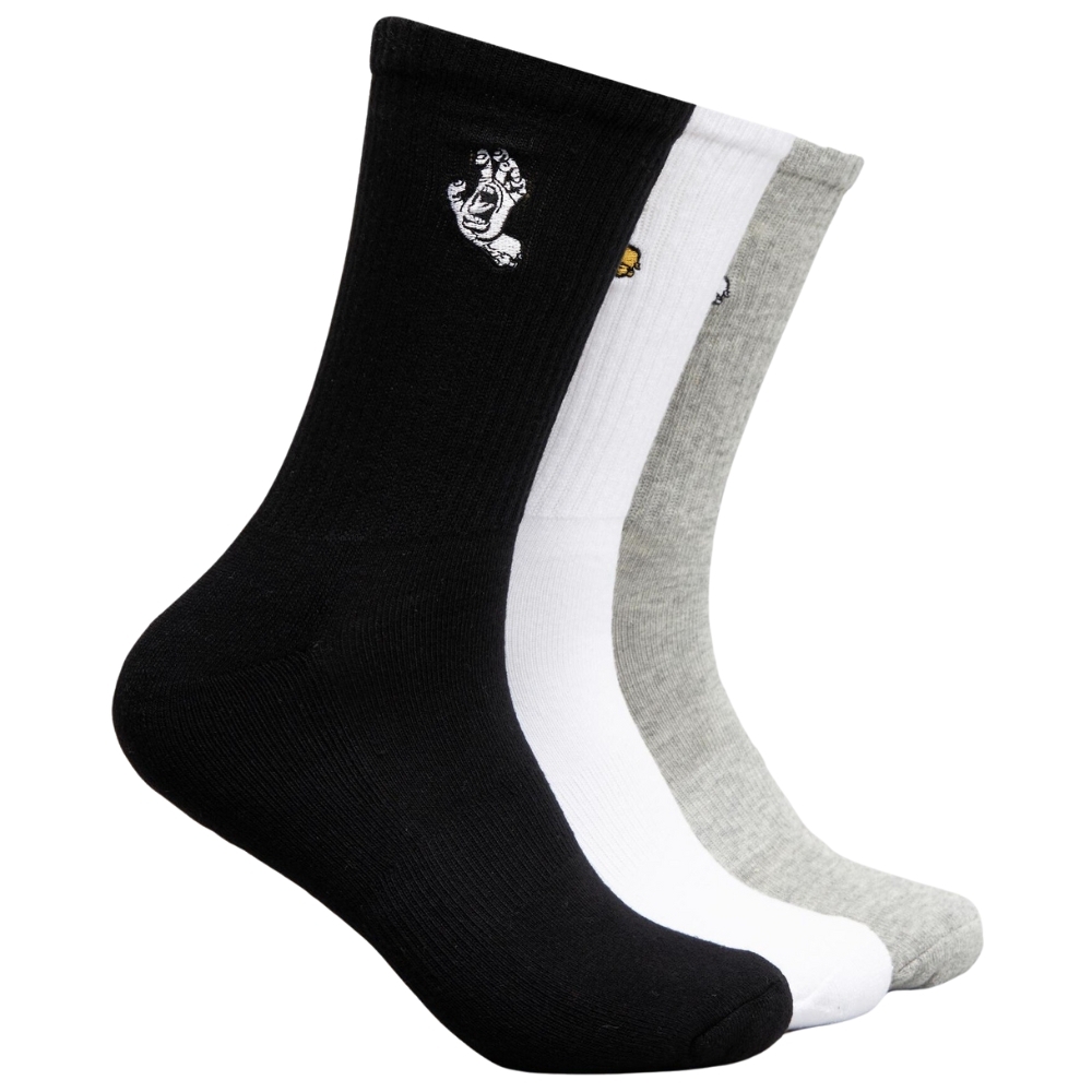 Santa Cruz Mono Hand Crew Black White Grey 3 Pack Mens Socks