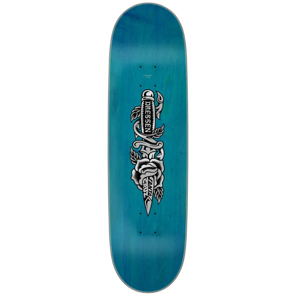 Santa Cruz Skateboards Eric Dressen Rose Dagger Pro deck featuring matte and raised ink graphics with metallic silver.