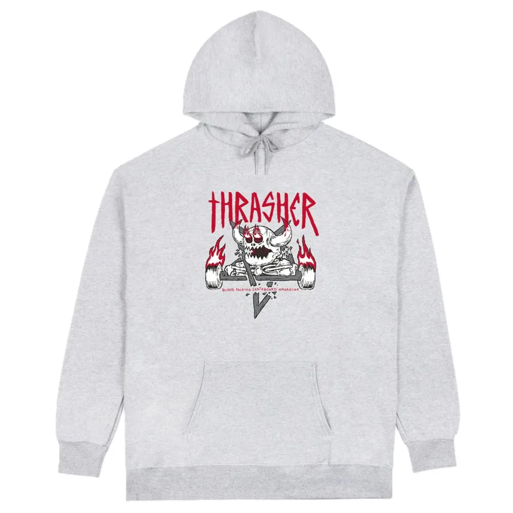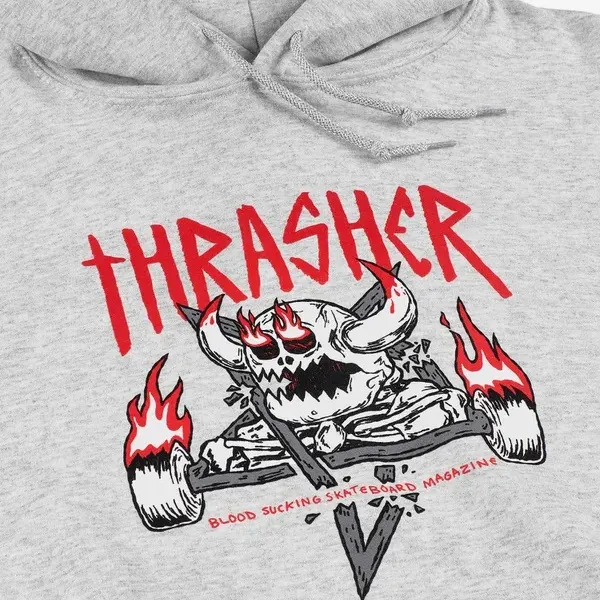 Standard fit hoodie woven from cotton and polyester. Featuring an adjustable drawcord, kangaroo pocket, signature Thrasher x Toy Machine sewn-in label and finished with artwork at center-chest.