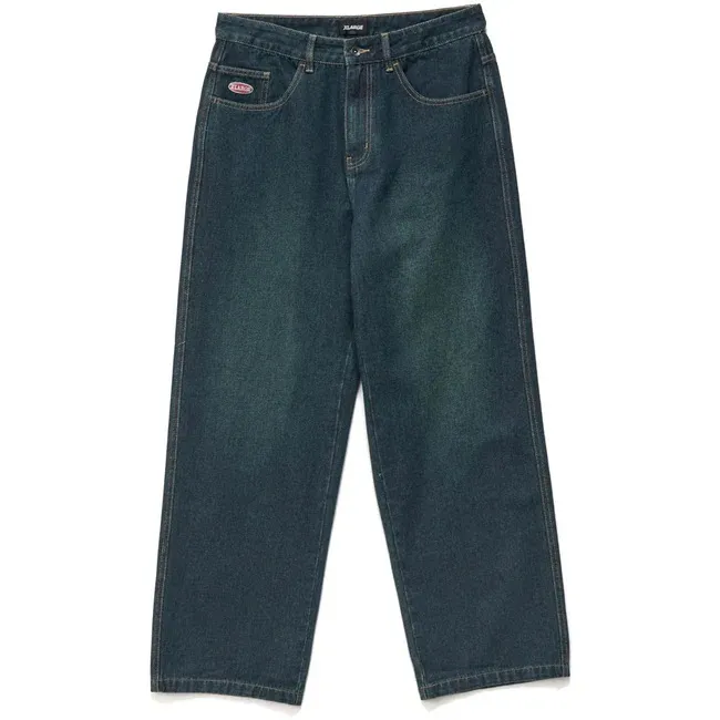 The Baggy Bull Denim 91 Pant in Swamp is a fixed waist loose fit. Features extra long leg in a washed denim, they have an oversized dropped waist with an extended rise and roomy thigh.